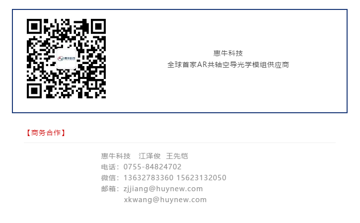 “惠牛科技自2017年创建以来就专注于AR与VR光学的研发及模组量产,是全球首家AR共轴空导方案的光学供应商”,张韦韪表示。